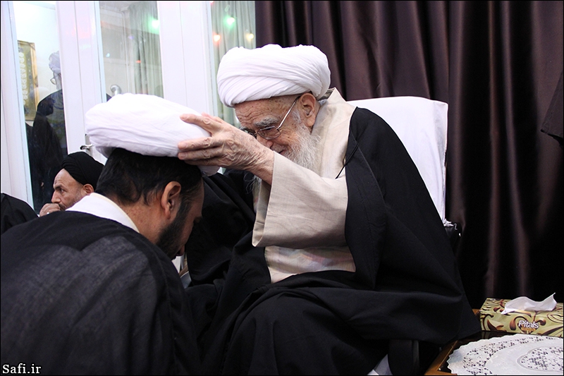 مراسم عمامه گذاری طلاب توسط حضرت آیت الله العظمی صافی گلپایگانی؛ 17 ربیع الاول 1436 هجری قمری