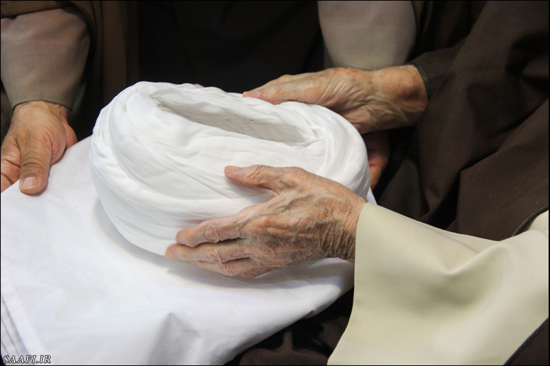 گزارش تصویری: عمامهگذاری طلاب توسط حضرت آیت الله العظمی صافی گلپایگانی؛ در سالروز ولادت حضرت امیرالمؤمنین علی علیهالسلام