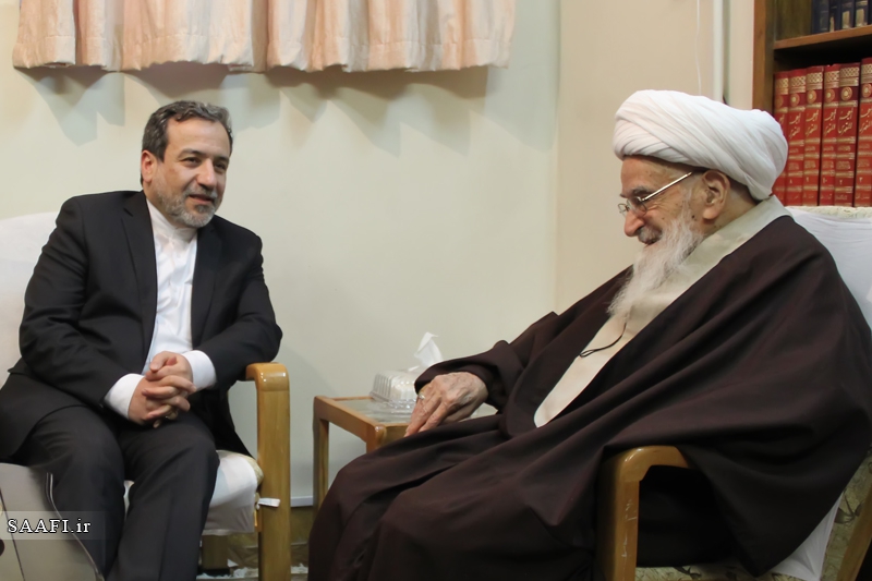 دیدار آقای دکتر سید عباس عراقچی، معاون امور حقوقی و بینالمللی وزارت امور خارجه با حضرت آیت اللّه العظمی صافی گلپایگانی