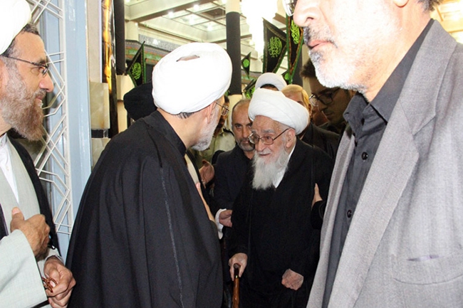 حضور حضرت آيت الله العظمي صافي گلپايگاني در مراسم بزرگداشت مرحوم آیت الله مهدوی کنی (رضوان الله علیه)، مسجد اعظم قم