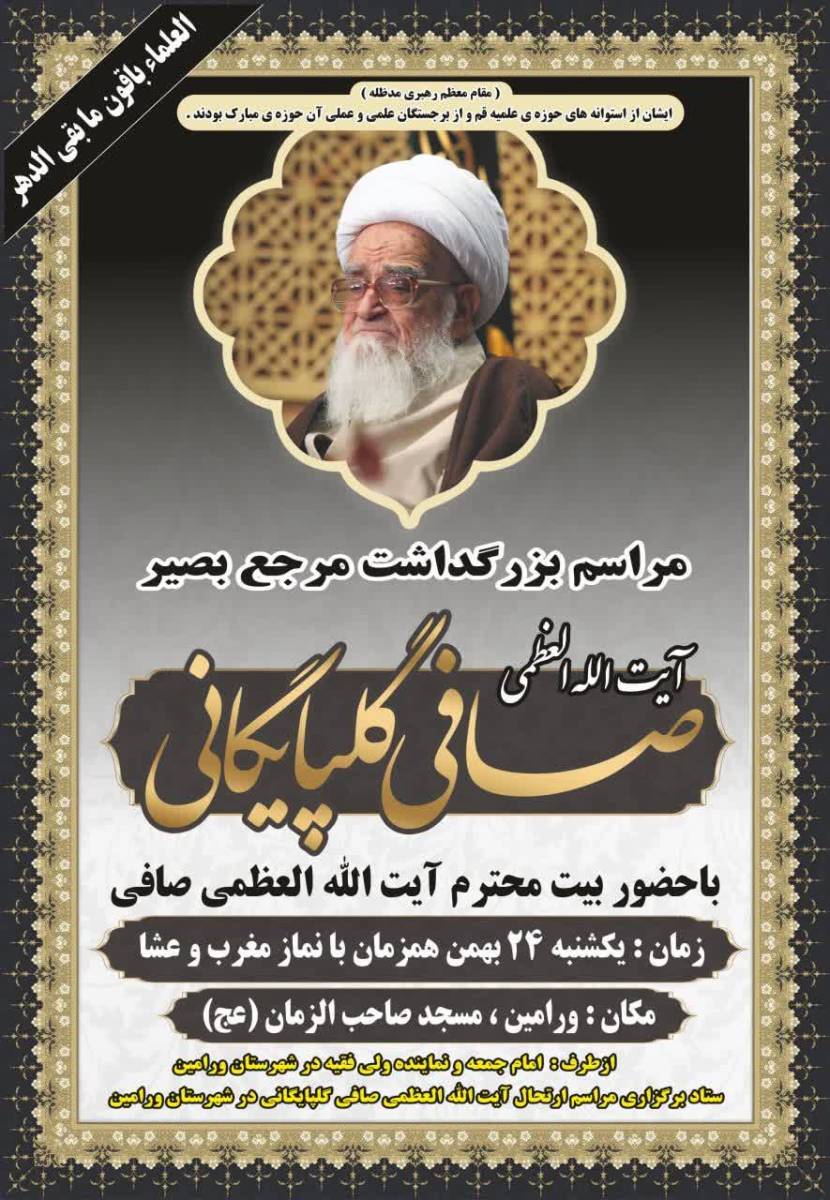 مراسم بزرگداشت مرجع عالیقدر شیعه آیت الله العظمی صافی گلپایگانی در ورامین