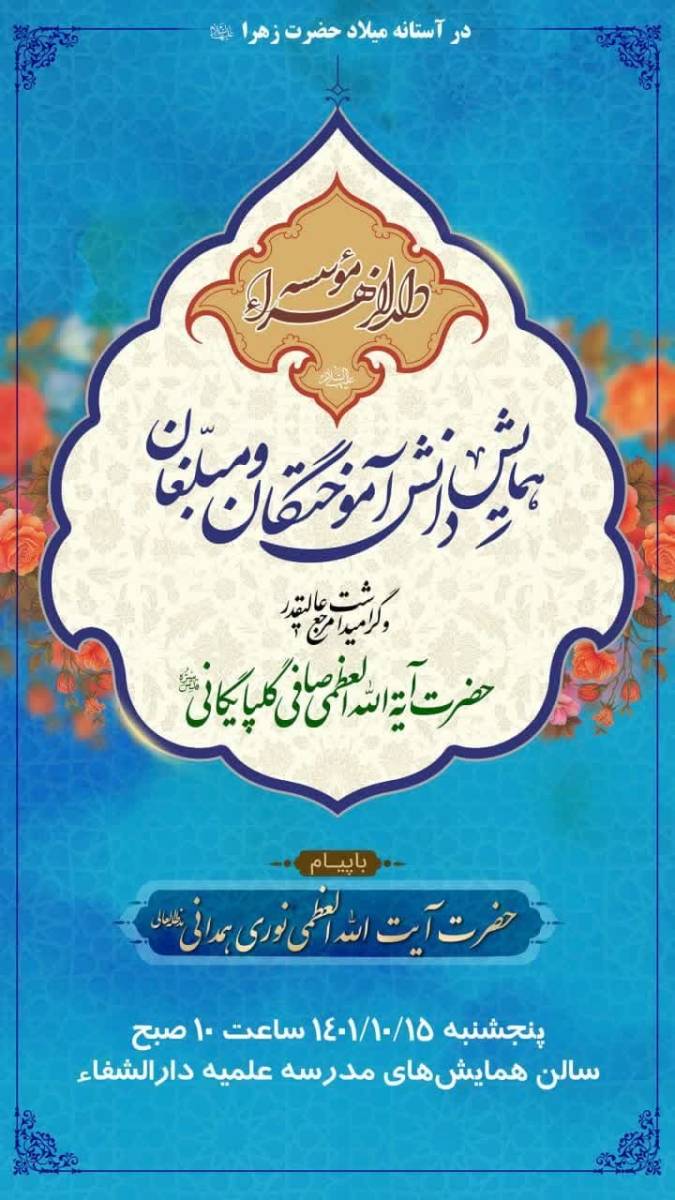 در آستانه اولین سالگرد ارتحال مرجع عالیقدر جهان تشیع حضرت آیت الله العظمی صافی گلپایگانی قدس سره همایش بزرگ تجلیل از خدمات علمی تبلیغی و اجتماعی آن مرجع والامقام از سوی دانش آموختگان و مبلغان موسسه دارالزهراء سلام الله علیها برگزار میگردد.