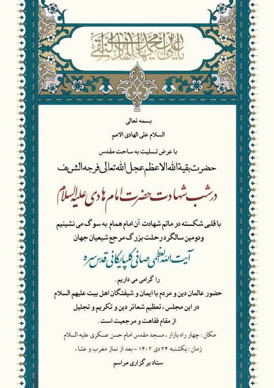 زمان:یکشنبه 24 دی ماه 1402 - بعد از نماز مغرب و عشاء